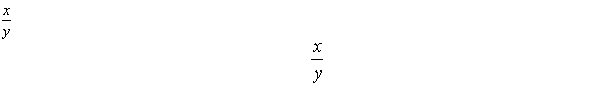 <math xmlns="http://www.w3.org/1998/Math/MathML" display="inline" mode="display"> <mfrac> <mi>x</mi> <mi>y</mi> </mfrac> </math>